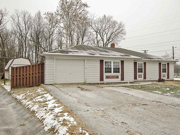 4 bedroom 2 bath, attached garage and huge outbuilding. This won't last long!! Huge living room, applianced kitchen connects to nice dining room that leads to a covered patio overlooking the woods. Nice master suite with 2 closets. This property overlooks the woods. New furnace.