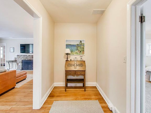 Storybook stone cottageMature perennial plantingsUpdated kitchenClean white kitchenRefinished original hardwood floorsDining roomNew windows