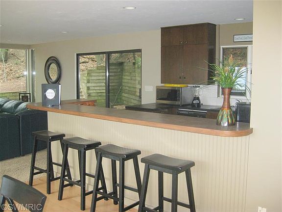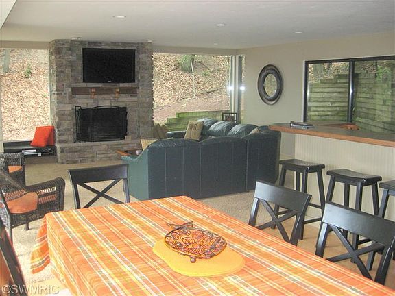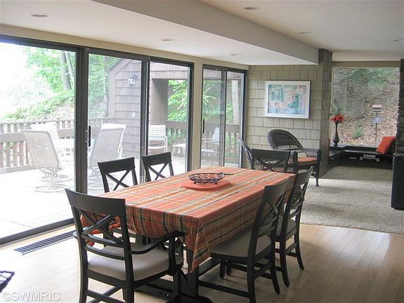 SPECTACULAR SUNSETS & INCREDIBLE WATER VIEWS from almost every room! This custom built home located in prestigious North Shore Estates is nestled in the dunes yet only steps to the deeded beach access & the beautiful sandy shores of Lake Michigan. This updated 3 bedroom, 2.5 bath home has an expansive open floor plan that's perfect for entertaining. Spacious fully applianced kitchen w/huge snack bar for casual dining is open to light & bright dining area w/wall of new sliding glass doors that open to the deck where you'll love to relax & enjoy the view. Dining area flows into spacious living room w/new floor to ceiling stone fireplace. Master Suite has its own viewing deck & full bath with granite countertops & lots of storage. Upper level features office, two more bedrooms, full bath and closets/storage galore. A unique home located just minutes to marina & pier, shopping & dining. Leave that hectic lifestyle at the door. Call today for your private showing today!