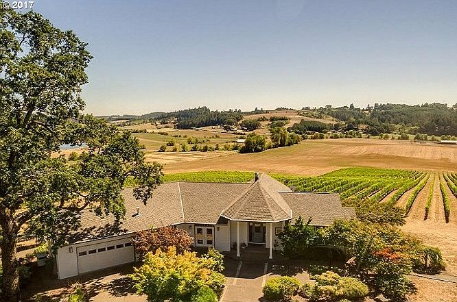 Deux Vert Vineyard & Estate surrounded by Yamhill/Carlton AVA's Finest at the top of the hill & end of a county maintained Rd w/360 degree views, 79+acres, lovely home & views out every window, LIVE sustainably farmed 15 acre vineyard, add'l 50+ acres plantable, 2 bldg rights, winery permissible, solar panels, shop in outbldg, 2000 bottle wine cellar, fruit orchard, Old Oaks, WaterFeature & Gardens. Private Paradise & Opportunity Awaits