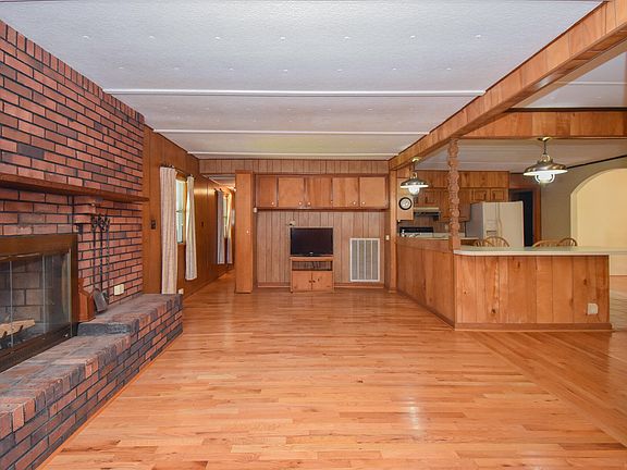 ONCE YOU COME IN .. you will love this open floor plan that features a spacious kitchen, dining room, gathering room, plus a family room, which boast a masonry fire place w/ gas logs. Home features Gorgeous hard wood & parquet floors. You will be delighted with generous traditional cabinets & counter space. Also off from kitchen there is a large master BR & master BA w/ walk in closet. Down both hallways there are 2 additional BR & 1 1/2 BA. Plus a laundry rm large enough for extra fridge/freezer. All appliances are included. A separate workshop/storage bldg. if you are that '' fix it or tinkerer''. Not to mention +/- 4 acre manicured backyard that would be perfect for children play, garden, pool, outdoor fireplace or build an additional house for a loved one.''Not a drive by'' call today!