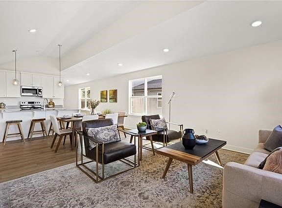 Cobalt by award winning Clover and Hive! This home has everything you need on one level. LVP flooring throughout the main level living areas, large quartz kitchen counter tops and island, unique pendant lights, and the open floor plan make this home a show stopper! The master bathroom has upgraded LVT floors, tile walls in the shower, quartz countertops on the double vanity, and a good sized walk-in closet. The second bedroom on the main level would make a perfect guest room or home office! Easy highway access and close to nearby shopping. Southpointe homeowners get to take advantage of a clubhouse, play area, swimming pool and trash/recycling is included! Pictures are of a previously finished model home. 2022-06-15