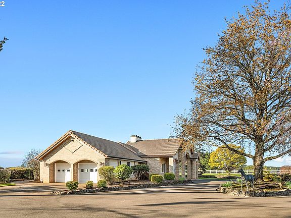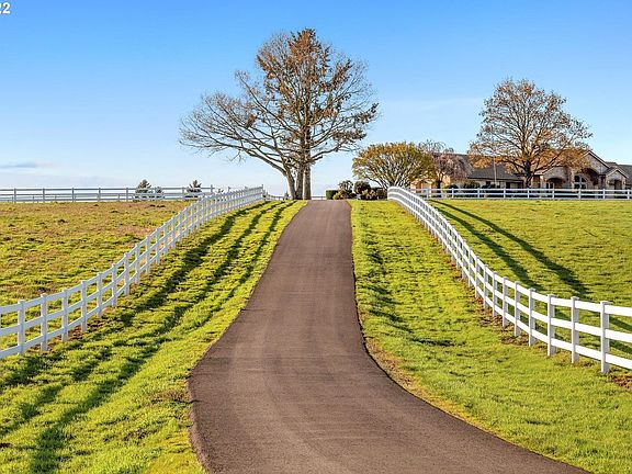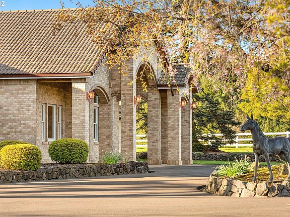 Long Private Drive to Invisable Landmark Hilltop Equestrian Estate on 38+ Acres of Level to Rolling Countryside. Mt Hood View! Level Walkout Patio&Yard. One Level Living at it's Best! State of the Art Kitchen.Vaulted Ceilings,Open Floor Plan,Pastoral Views Out Every Window.14 Stalls,Indoor Riding Arena,Crossfenced Pastures. Multiple Garage/Shop Space for Motor Entusiast or Boater. 31 Miles to PDX. Water,Electricity,Septic Plumbed to Bldg Site for Hardship Permit Possibility. Buyer Due Diligence.