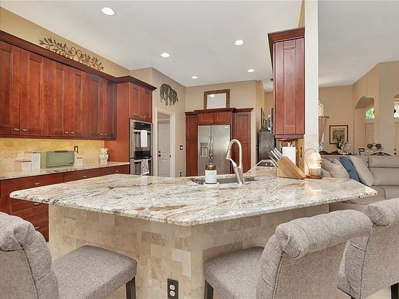 Large islandScreened-in lanaiDedicated officeGranite countertopsHigh ceilingsUpdated gourmet kitchenVersatile flex space