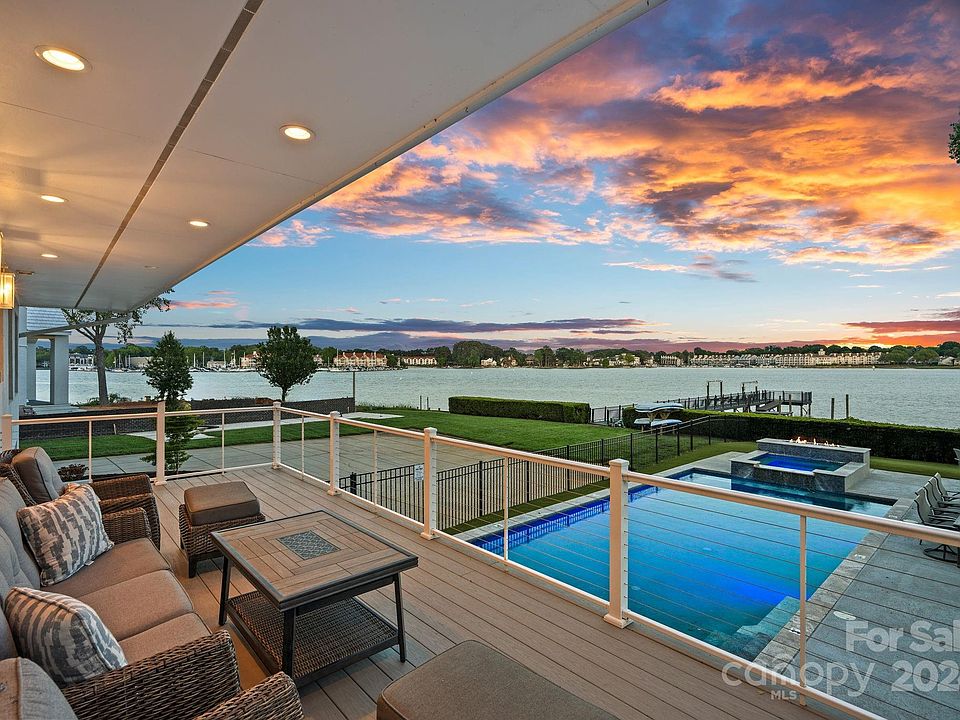 If views & lake life are what you're after, look no further! Enjoy the outdoor experience with pool, outdoor kitchen, expansive deck, & a dock with boat lift to complement the property's 140-feet of shoreline on the main channel of Lake Norman! The home's expansive front porch welcomes you & your guests, followed by the sunlit open floor plan. With views from several rooms in the house, enjoy the beautiful skyline - sunrise, sunset, or an exciting thunderstorm - from the comfort of your home. The main level, ideal for entertaining, features the primary bedroom with 2 ensuite bathrooms. Upper level offers a media room & four additional spacious bedrooms; one with an ensuite, two with shared Jack & Jill, & one additional full bathroom. When you're ready for some indoor fun, the finished basement was designed with entertaining in mind. Currently with a pool table, foosball, & air hockey, open the garage doors to invite the outside in. For wine enthusiasts - enjoy stocking the wine cellar!
