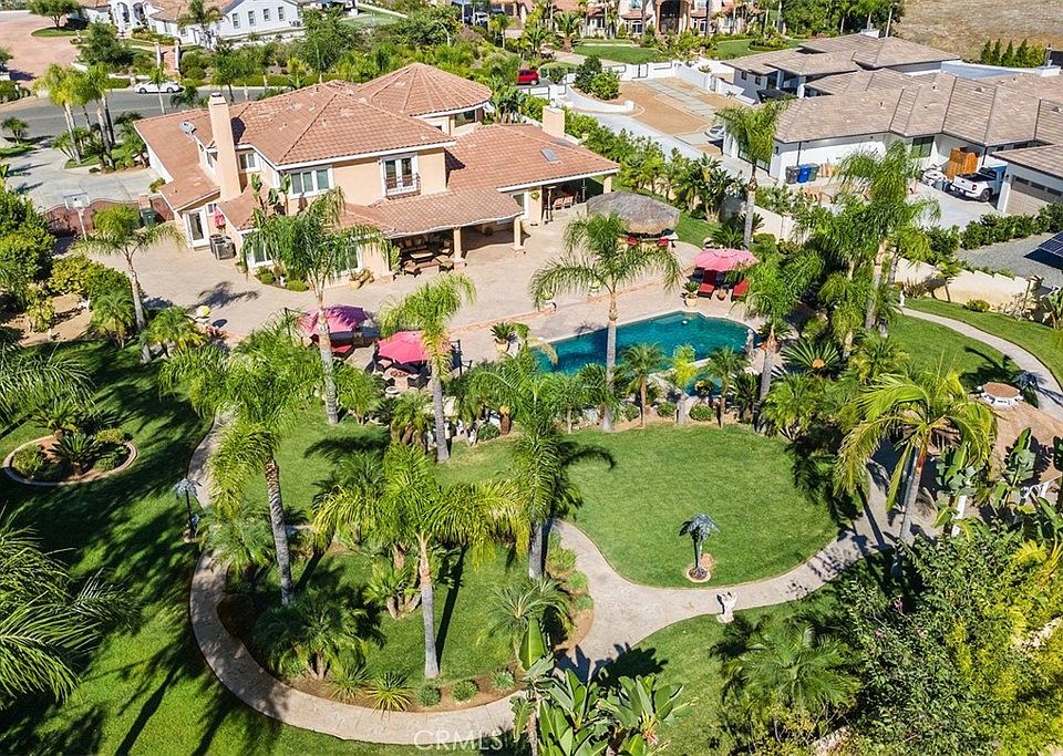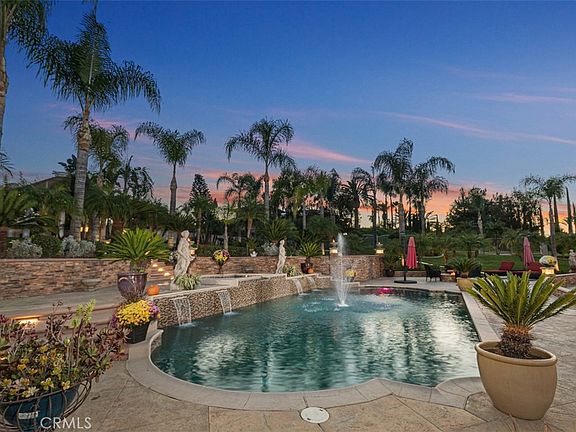 Video 360 Tour Link Above ***Discover your new lifestyle in this sought-after glorious Overlook area in Riverside in this 5-bedroom, 5-bathroom estate with perfectly manicured yard with luxurious pool and spa. Arrive at this custom estate with .88-acre yard complete with cascading waterfall in front. Then step inside this elegant home with dramatic open entry with mosaic design flooring with spiral staircase while drinking in the high cathedral ceiling with recessed lighting as it wraps its arms around you with a magnificent warm feel. Prepare feasts in your generous Chef’s kitchen with large granite island & custom large walk-in pantry and two dishwashers and sit-down wet bar enhanced with wine refrigerator. The large private backyard is like a 5-star resort and invites you to relax & entertain with 2 covered patios complete with fans, cabana style BBQ cooking, sink and 2 refrigerators. You will want to sit in your spa and enjoy your dramatically landscaped backyard. Perfect entertainers’ backyard pristine landscaping, fire pit and gazebo. This estate has extra-large gated RV parking, oversized 4-car garage and enough parking for 10 cars. Two large downstair bedrooms complete with their own bathrooms. Convenient double door office off entryway. Upstairs large primary bedroom with large walk-in closet, large master bath and exquisite view of the pool is a perfect private retreat. The other 2 large bedrooms have walk-in closets and share a beautiful bathroom, alongside the upstairs laundry room. Fruit trees include tangerine, avocado, two figs, green apple, apricot, peach, lemon, grapefruit, Kumquats and climbing grapevines. This one you don't want to miss.