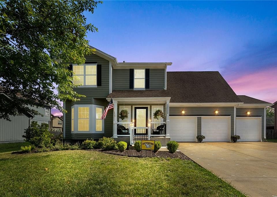 Welcome home to this Palisade Park beauty in Olathe! As you walk in you are greeted in an elegant entryway with soaring ceilings throughout the main level of the home. The living room features a giant fireplace and plenty of massive windows that allow natural light into the room. The kitchen features a breakfast nook that looks out to the beautifully landscaped front lawn. Upstairs are the generously sized 4 bedrooms. The master bathroom features a double vanity and there is a large walk in master closet. Enjoy movie nights in the finished basement which features a nonconforming bedroom. Big fully fenced in backyard is great for pets! 3 car garage has plenty of storage space and the space heater and air-compressor stay with the property. HVAC is just 5 years old.