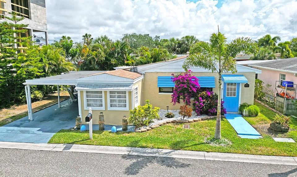 Move-in Ready! Beach bungalow in quaint Surfside neighborhood. Two bedrooms and a bonus room for an office, guest space, artist’s studio, gym, etc. These long-time owners have taken impeccable care of their seaside gem. ***watch the walk-thru video to experience the layout*** Every room has a coastal theme. It is sold furnished with all the new (2022) appliances (including a full-size washer & dryer.) Other 2022 updates include the kitchen cabinets, bathroom, wainscoting in the living space, ceiling fans, new tile floors, and fresh paint in & out. Roof replaced in 2016. The outside space is an oasis: Two patio areas (1 is covered) and 1 has a pergola. Mature Florida landscaping. Good storage in & out. Covered parking. Three blocks to the white, sandy beaches of Redington Shores (see map in photos, it’s an amazing barrier island location.) Close to retail, restaurants, beach trolley, public boat launch, groceries and Surfside’s Community Park! This is Beach Living!