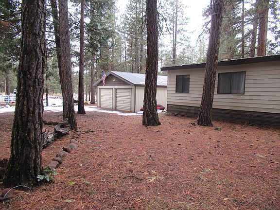 1.0 acres in the desirable Keno community just minutes from Klamath Falls is this 2 bed, 2 bath manufactured home with a fantastic large 2 car detached garage/workshop & a storage shed all nestled in the Pine Trees. New flooring throughout main living area, new appliances, new on demand hot water heater in the kitchen. Fenced back yard and fenced in area for a garden. The front porch and the back deck are enclosed and offer privacy as well as a wood storage area for the certified wood stove* All buildings have a metal roof.
