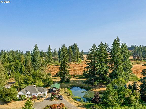 BOM by no fault of the property. Seize the opportunity to own this unique farm with certified water rights! First time this Beavercreek property has been offered on the market since the 1950's. Charming white farmhouse and somewhat of a local landmark, this home sits on the corner of Carus and Lower Highland Rd. with 24 acres that is both pasture and timber (11 acres of timber that was recently logged.) The 11 acres can be reforested at seller's expense to maintain timber deferral or the usage can be changed to farm for farm deferral, either option helps keep property taxes low. Buyer's choice. The open field is great for livestock or growing hay and other crops. Property is mostly flat with slight slope. Root Creek and large Pond (approximately 2/3 acre) can be used for irrigation with Certified Water Rights for 10 acres. Multiple apple, pear and plum trees. Large carport behind home could double as a covered patio for backyard BBQ's and gatherings. Property is partially fenced. Home has multiple options for bedrooms or bonus rooms. Currently two bedrooms on the main, two other bedrooms, and a huge upper space with a big dormer, large walk-in closet, and separate floored storage area. This upper space could make an ideal primary bedroom. Vintage touches with built-ins, coved ceilings, curved counter and old style range in kitchen. Use your imagination and make this lovely farm yours in the desirable and quaint Hamlet of Beavercreek. You will be rewarded with a stunning Mt. Hood view coming down Lower Highland too! Great price for such close-in acreage with endless possibilities.