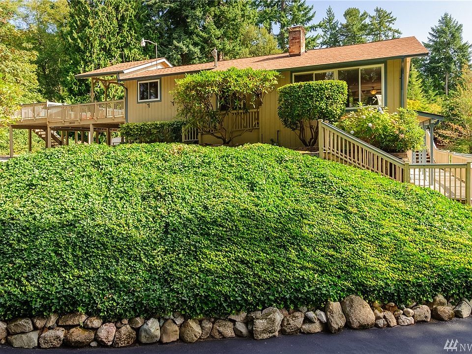Must see!! This amazing property & updated 4 bdrm 2 bath home are true find. Enjoy privacy & park like setting in this desirable Seaview neighborhood. Formal living room w/gas frplc, dining rm, updated light filled kitchen looks onto private backyard & patio. Up: 2 good sized bedrooms & expansive deck, 5 pc bath & huge storage closet. Lower: Sep entrance, family rm w/2nd frplc, full bath, 4th bdrm, big utility rm /storage space. Shop space, covered parking, & parking for boats & RV.