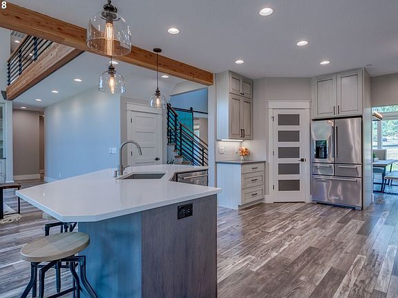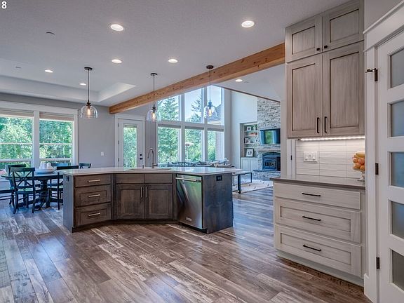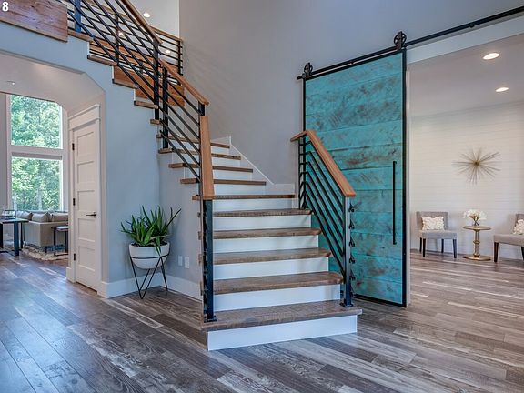 Circular driveway invites you to this custom home on 6.41 acres. Soaring ceilings & grand spaces w/large windows maximizing light & views of greenery. Stamped concrete patio, LRG covered decks, nature trails & fire pit area. Dream home offering peace & serenity. Modern & inviting finishes include handcrafted barn doors, exposed wood beams, & reclaimed wood staircase. Expansive master bed/bath on main,gourmet kitchen that exudes quality!