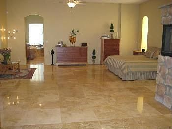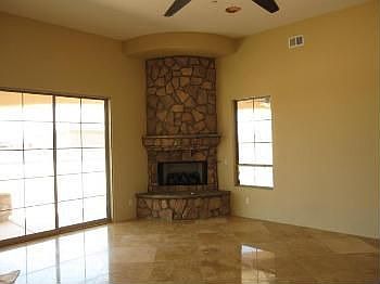 Listing agent: Chuck Fazio, Call 480-570-8020 for information. Welcome to Russell Ranch, a private, gated enclave of custom estate homes, resting on acre homesite. This 4/3.5 Tuscan inspired custom home with rustic stone and classic spanish detail, features a spacious layout with exquisite, highly polished, no grout, 24'' Travertine flooring throughout. Thoughtfully designed with an open floor plan for the way a family with children would live. Gorgeous granite counter tops, with a breakfast bar and a huge pantry sets off the kitchen. Vaulted ceilings and Fire Sprinklers add volume and peace of mind. Oversized Master Bedroom with sitting area and a master bathroom featuring beautiful sinks and upgraded faucets. The roof is made of concrete and foam and it has been stressed for a balcony. A large patio already plumbed for an outdoor kitchen.