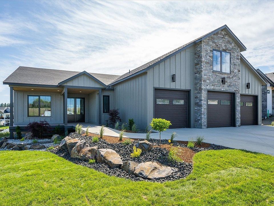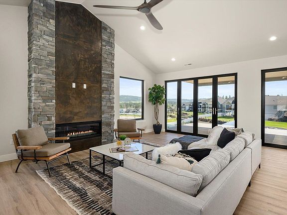 Welcome to this stunning newly built ranch-style home that offers the perfect blend of elegance & comfort. This meticulously designed residence provides ample space for relaxation & entertainment. As you enter, you'll be greeted by a spacious Great room featuring a linear gas fireplace with stone & metal accents, creating a cozy ambiance w/20ft of accordion doors that seamlessly connect the indoors with the covered deck, offering breathtaking views of Mica Peak. The chef's kitchen is a culinary enthusiast's dream, complete with a 48" 8-burner gas range & double oven. The 10' island provides ample seating, making it an ideal spot for casual meals or social gatherings. Adjacent to the kitchen is a gorgeous butler's pantry featuring ice maker, wine fridge, sink & convection microwave. The primary bedroom is a private sanctuary, featuring access to the deck & bathroom suite which offers a luxurious zero-step shower, large soaker tub & dbl sinks. The 4 car garage with huge bonus room above. Truly amazing home!