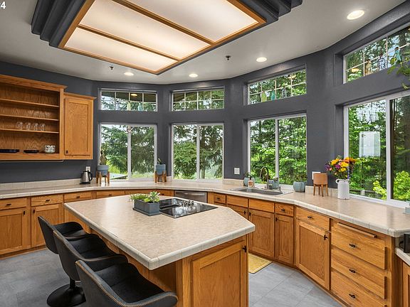 Welcome to your private North Plains countryside haven. Beyond gated entrance off of Dixie Mountain road lies a hidden gem, a sprawling 3.75-acre estate awaiting your discovery. As you navigate the winding drive, anticipation builds, revealing the beauty of this countryside retreat. Nestled among towering trees, the expansive home beckons, its multi-level decks offering glimpses of valley vistas and forested landscapes. Step inside to find a sanctuary of comfort and style. Vaulted ceilings soar overhead, creating an airy ambiance welcoming you home. In the heart of the home, a coved, cook-island kitchen awaits, its high ceilings and stainless appliances poised for culinary adventures. Beyond, formal dining and living spaces beckon, bathed in natural light streaming through floor-to-ceiling windows. A wood stove crackles with warmth, inviting cozy evenings spent with loved ones. Venture further to family room adorned with a gas fireplace, clerestory windows, and vaulted ceilings. Here, stories are shared, laughter fills the air, and memories are made. Retreat to the primary bedroom, a tranquil haven boasting a dual vanity ensuite, soaker tub, and shower. Adjacent, an office or den space awaits along with skylights and French-doors leading to private deck offering a place to unwind amidst the sounds of nature. With multiple outbuildings dotting the landscape-from barn/shop with finished upper floor, quaint cabin, to new lower level shop - whether you dream of an artist's studio, workshop, or simply space to roam and explore, this property offers it all. This property is more than just a house - its a lifestyle. Well appointed, private, with access to growing North Plains community. Don't let this opportunity pass you by. Call today to learn more and schedule your private tour of this captivating North Plains estate.