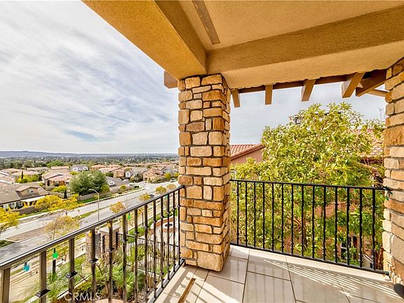 Spectacular panoramic views of city lights, Catalina Island, Sunset and the fireworks from Disneyland and 4th of July await you at this beautiful home at Heritage, Vista Verde. Sitting on a premium lot, this gorgeous home has been exquisitely upgraded and meticulously maintained. The entry door opens to a dramatic foyer with a custom stone mosaic surrounded by stacked porcelain tiles. 3 spacious bedrooms plus an office on main floor and a master retreat with additional fireplace. All bedrooms have an ensuite bath and a walk-in closet. The impressive great room boasts a collapsible accordion door, bringing the outside in to create a trendy lifestyle! Well landscaped backyard offers a BBQ island, gracefully patterned stone patio and 3 arch doorways. Gourmet kitchen features granite countertops with full backsplash, an oversized island with a lot of bar sitting, a glass pantry door, and upgraded stainless steel appliances including a refrigerator and 6 burner stove with a griddle. The master suite is a dream! A retreat with custom entertainment center, framed wall mirrors, tray ceiling with cove lighting, two way fireplace, a closet organizer, a huge jacuzzi, a balcony with stacked tile flooring and the amazing views! A perfect office with lighted tray ceiling & built-in bookcase. Crown moldings, custom designed wrought iron staircase. Upgraded real wood flooring and carpet. Epoxy flooring & built-in cabinets in garage. Views can be even seen in living room and kitchen!