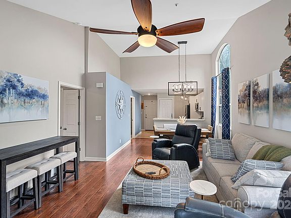 Lake Norman WATERFRONT!!! This 3rd floor End Unit Condo has tons of natural light, soaring tall ceilings and wonderful privacy. Offering 2 Beds and 2 Baths this unit is turn key with lots of recent updates including all new Kitchen with stainless appliances, stylish cabinetry, hardware, and quartz countertop. The open floor plan shows off the spacious Dining and Great Room. Great Room offers gas log fireplace and sliders to balcony. Hand scraped Hardwoods in Main living and Bedrooms. The Guest Bath is also updated with new vanity, lighting, and tiled shower. Primary Bath has neutral finishes and a jetted garden tub. Primary Bed has private door to oversized balcony and water views. 3x5 Storage closet is located by the Front door for easy access. Private entry level so no sharing stairs with another 3rd floor neighbor. Short walk to Safe Harbor Marina, Pool, Tennis courts. No Elevator.