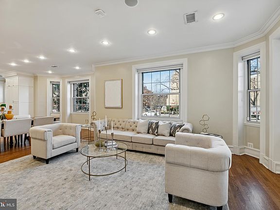 Welcome to Somerset House – a historic 1917 Harry Wardman landmark – where timeless elegance meets modern efficiency. The stunning building, which was completely modernized in 2014, maintains much of its pre-war elements and graceful design. Originally 3 units, residence 106 has been meticulously maintained and offers over 1,800 square feet of living space (all on one level). The 3-bedroom, 2.5-bathroom, corner unit features include: oversized windows with custom motorized blinds & shutters, high ceilings, gleaming hardwood floors, original crown moldings, built-in speaker system and spacious custom closets. Prominently situated on the southwest corner of the building, you will be living in your own private wing. Entering you are greeted by a welcoming foyer that leads directly to the open kitchen, dining & living space. The customized gourmet kitchen with its expansive center island is a chef’s dream – boasting high-end, stainless-steel appliances, granite countertops and custom cabinetry. The primary suite, which is tucked away from the main living space, features walk-in closets and a large, ensuite bathroom with dual vanities. The second bedroom also includes its own ensuite bath. The third bedroom, located off the main foyer, is an ideal home office with its built-in desk. The unit also comes complete with TWO surface, tandem parking spaces and TWO storage units. This pet friendly building has many amenities: a dramatic lobby, front desk service, a wine room, community room, fitness center, overflow laundry, a bike room and extra storage. 1801 16th St NW is prominently situated in DC’s vibrant Dupont Circle neighborhood, convenient to two Metro Stations and multiple bus lines and in close proximity to both the 14th Street & U Street Corridors.