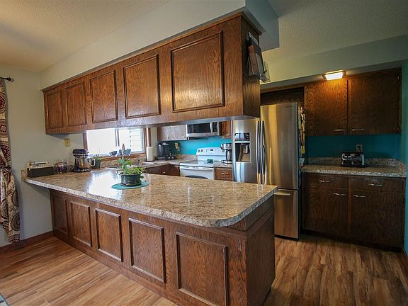 Ready to get out of city limits? Check out this elusive rural property on a sprawling setting with 9.68 acres of tree-lined bliss! The home offers 3 bedrooms, 2 baths and attached 27x29 finished garage. Some updates include vinyl siding, shingles (2015), vinyl windows, septic (2016) and more! Upon entering, you will be delighted at the open and well-thought-out floorplan this home provides. Off the garage is a HUGE breezeway with oversized coat closet, pantry, utility sink, laundry, cabinetry for storage and plenty of space for extra fridge/freezer - perfect convenience as this leads to the kitchen. The kitchen has a 4-piece appliance ensemble, high definition countertops and peninsula for added storage and dining space. The dining area is open to the kitchen with flawless laminate flooring and bring the BIG table, there's plenty of room to entertain! The living room is very spacious with ceiling fan, newer carpeting and picture window. Take note of the large windows with southern exposure, great to see who is coming and going - not to mention the quick snow melt-off from flatwork when that sunshine hits! Custom blinds and tasteful fixtures/finishes throughout make this home move-in ready. Added comfort with the furnace humidifier and allergen filter are also a bonus. Continuing on, the master bedroom is a retreat with ceiling fan, newer carpeting, oversized dual closets and private en suite with plenty of storage. Bedroom two is also quite large with dual closets, carpeting, ceiling fan and bedroom three also has newer carpeting. The main bath is large with dual sinks, Duraceramic flooring and linen closet. You will also find a MASSIVE walk-in pantry/storage closet to keep the clutter at bay. The attached garage is oversized, insulated, sheetrocked, painted, heated and has built-in shelving. There are two convenient walk-thru doors to either front or back yard space. The backyard has a patio w/ hot tub hookups and the front yard also has a patio space to enjoy. Outside, you will find an oversized garden with well for watering, a container shed, and a 36x80 round top quonset with concrete floor and electric - wow! Don't forget about the security system, backup generator with 22kW and owned propane tanks (2x1000 & 1x500). Check out this rarity today!