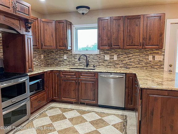 This spacious ranch offers over 3,100 sq ft of living space, a triple attached garage, and a prime location in coveted neighborhood. The main floor features a beautiful kitchen, a cozy living room with gas fireplace and built-in surround sound, and three bedrooms including a primary suite with private walk-out deck. Main floor laundry adds everyday convenience. The finished lower level is built for entertaining with a sleek chrome-detailed wet bar complete with full-size refrigerator and wine fridge, a poker table nook, and another surround sound area perfect for game day or movie nights. A guest bedroom and bathroom provide extra space, while the true showstopper is the incredible in-home theater room with projector, six plush recliners, bold red decor, and even a popcorn maker