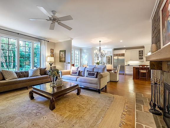 An elegant 4 bed home in highly desirable North Ridge Estates! Meticulously renovated and re-designed. Luxury open plan chefs kitchen with SubZero fridge. Bright dining room and two cozy living areas. Spacious first floor master with walk in closet and marble bathroom. Upstairs has three bedrooms, two en suite, and a bonus room/office. Master landscaped gardens and large flat lawn. Very private on quiet tree lined street. Many upgrades inc new roof. 15 mins to dtown Raleigh. MUST see!