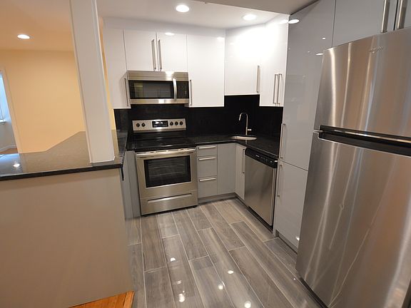 Stainless steel fully applianced kitchen. Brand new flooring throughout. 2 full bathrooms (one shower, one tub). 1 large bedroom, 2 small bedrooms.