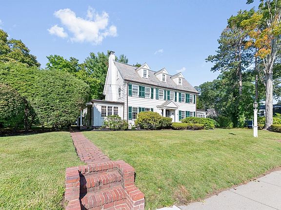 Desirable Waban! This 6 bedroom 3 1/2 bathroom slate roof Colonial home is in a prime Angier School neighborhood and just down the street from Waban Square shops and MBTA, and perfect for commuters, as it is convenient to the Mass Pike and Rte 128. This gracious home features a first floor family room which has a separate entrance to a lovely large level yard, a beautiful appointed living room, formal dining room, a modern eat-in kitchen, just adjacent to the Sun room, mudroom with laundry and a library/study. Prime bedroom suite and three bedrooms are found on the second floor and the third floor is just perfect for a guest, au paire or in-law suite with two bedrooms, one bathroom and an additional storage room. There is also a two car detached garage with storage loft and beautifully landscaped grounds. One year home warranty included.