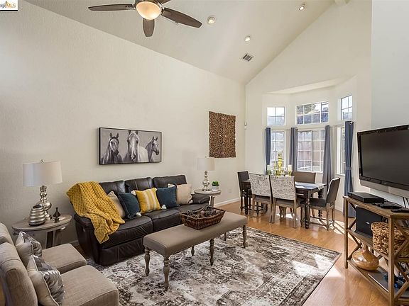 This Property is within walking distance to Big Break Marina & the Walking Trail! There are Vaulted Ceilings in the Living / Dining Room Combo that opens to the 2nd story. A Cozy Family Room with Wood-burning Fireplace is located just off the Kitchen Nook. The Galley Style Kitchen features a Gas Stove, Tile Floors, Microwave Hood, Dishwasher, Garbage Disposal, Tile Counters, Sealed LED Lighting and Pantry with Views out to the Backyard. There is newer, Neutral Paint throughout the Interior along with Laminate Flooring in the Main Living Areas. Sealed LED lighting is featured throughout most of the home with Ceiling Fans located in all Bedrooms, Kitchen & Living Room! The Property includes a Fenced Yard with Large Sideyard Access, Brick Patio with Pergola and a Dog Run. This Vintage Park Home is Convenient to Downtown, Schools, Walking Trail & Big Break Marina!