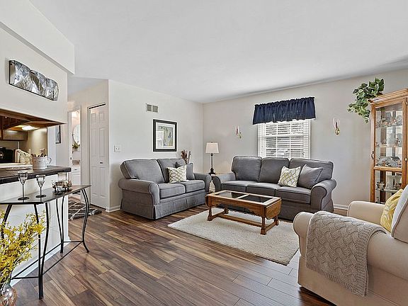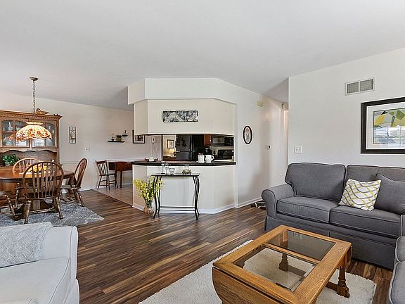 Welcome to this charming semi-detached ranch home situated on a large corner lot in the desirable Rosedale community! Step inside this beautifully maintained home where you will be immediately greeted to wonderful features throughout. Living room features laminate floors and window treatments. Formal dining area with laminate floors, chair rail and window treatments flows into the kitchen with tile floors, tile counters and new refrigerator and microwave. Cozy family room includes laminate floors, ceiling fan, window treatments, access outdoors and a wood burning fireplace, perfect to enjoy on those chilly evenings. Two generous bedrooms and one full bath. Head outside to the patio space which overlooks the cleared backyard with a shed for storage, a great space for outdoor enjoyment. One car garage. Conveniently located to many amenities including access to highways for an easy commute. Community features sidewalks and street lights for leisurely walks and a nearby park. Newer HVAC in 2015. Newer H2O Heater in 2021. Newer roof in 2010. A joy to own!