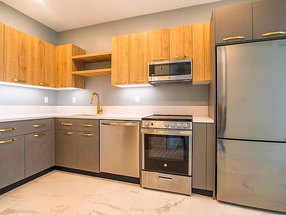 This beautiful 3 bed / 1.5 bath apartment features marble floors, stainless steel appliances (including a dishwasher), tons of kitchen storage, central ac, and a private balcony!! Building amenities include: fitness center, lounge, shared roof deck, package room, laundry room, bike room, and an elevator! Garage parking is available for an additional monthly fee. Easy access to public transportation via the A/C/J/L/Z trains! Only three blocks away from the L train! Schedule your showing today! Virtual tours are also available. *Photos are of a similar unit in the building