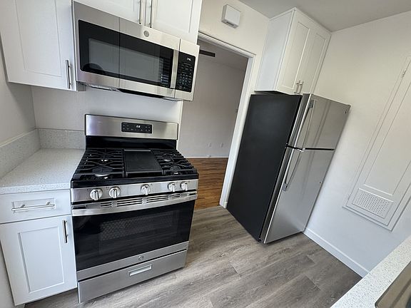 Small private yardNew appliancesHardwood floorsRemodeled kitchenGas rangeRange hood microwave