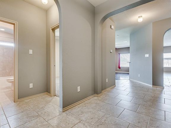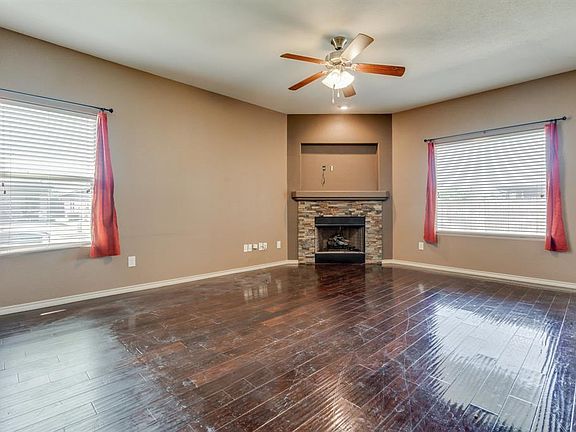 DR Horton home corner lot, landscaped w rock beds and lighting enter to warm beautiful decorators colors paint , open living w gas log fireplace featuring niche for tv, flows to grand kitchen and dining.. enjoy spacious master split from BR 2 BR3 and laundry. Upgrades incl stainless kitchen appliances, tile and hardwoods, rounded corners, fireplace w gas logs, covered patio w visor and extended concrete patio w wiring for hot tub.