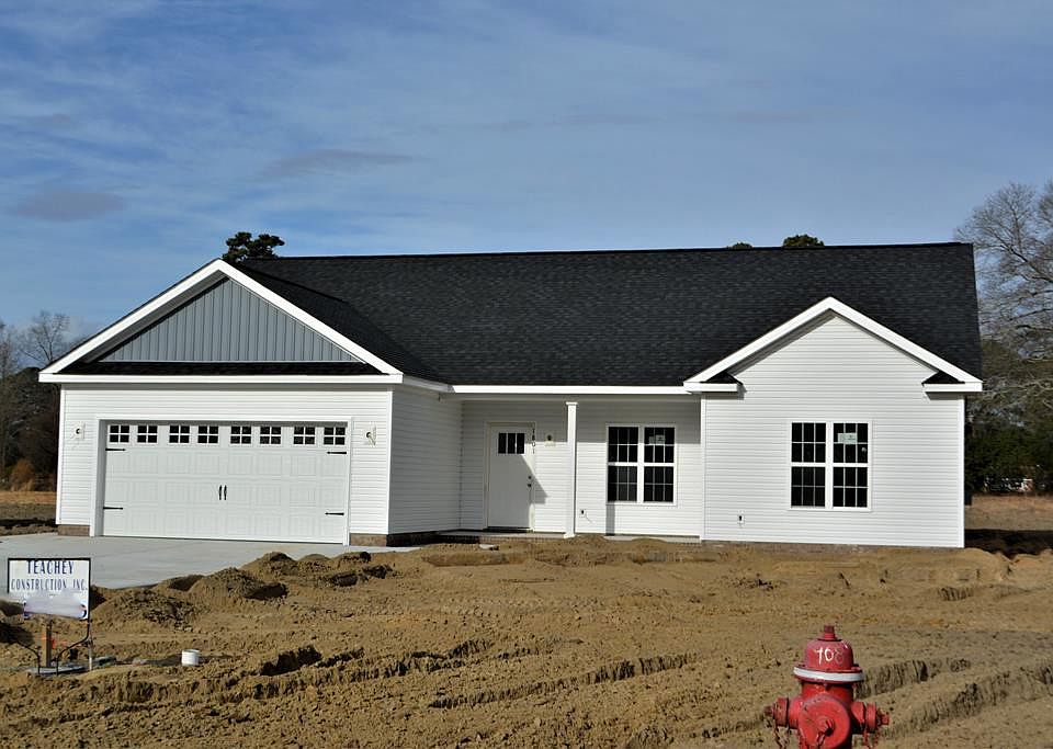 Beautiful New home-New Community! 3BR, 2 ba, Laundry Rm & Dble Garage. Split Floorplan gives Plenty of privacy for this king-sized master suite. WIC is enormous! Master Ba w/his/hers vanities/oversized shower. Nice! Open floorplan thru G/R, Dining, kitchen. Upgrades & Quality thru-out. Brite white cabs, Granite counters, SS appl, LVP in main living areas. Rocking chair front porch welcomes you in or you can spend time on back patio overlooking your expansive back yard-almost an acre! No HOA! Location is convenient to SJAFB, shopping, restaurants & Our Beautiful Downtown/Center Street area! ALL that Goldsboro has to offer is close! Raleigh commute is super convenient on Hwy 70by-pass or Hwys 795/264. Take a look... Love It ... Welcome Home! ANTICIPATED Early-mid April completion. Newly Decorated. Ranch stype.