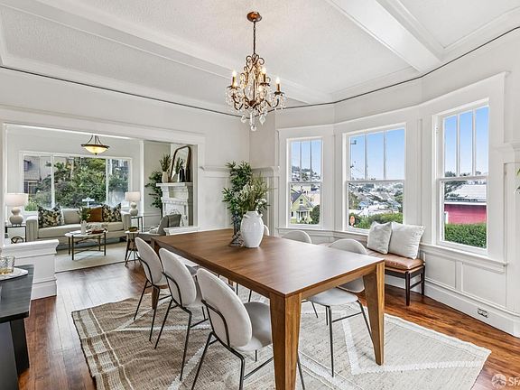 Charming and move-in ready, this light-filled 2BD/2BA home is situated on a serene corner lot in desirable Noe Valley. Fresh interior paint and newly refinished original wood floors highlight the home's vintage character and warm ambiance. The main level features a spacious living room with cozy fireplace, formal dining room, and sunny eat-in kitchen. Just off the kitchen is a flexible bonus room perfect for a home office or sitting area with access to the backyard. A full bath completes this level. Upstairs you'll find two generously sized bedrooms, both with excellent closet space, along with a second full bath and a linen closet. The expansive backyard is ideal for outdoor living and includes a large shed great for a workshop, studio, or storage as well as a gated parking area accessed from the side of the lot. Prime location close to neighborhood shops, dining, parks, schools, tech shuttles, public transportation, and easy freeway access. A well-maintained Noe Valley classic!