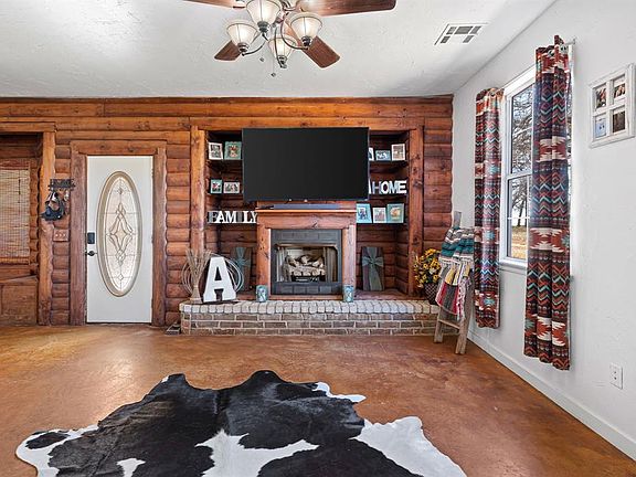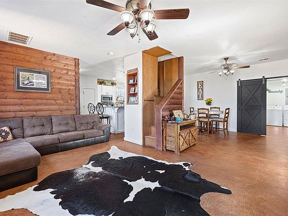 This is a beautiful 3 bed 2.5 bath farmhouse! Setting on over 5 acres, all 5 acres is completely un-restricted. Pulling up you will see the circle drive in front as well. The house itself is over 1900 square-foot in addition to the large bedrooms jetta tub, and walk in closets. There is an office, living room area, dining area, and kitchen! In addition to the house itself there is a 30 x 40 shop with two 8 x 8 overhead doors the shop also has a bathroom with shower, restroom, and sink, plus the shop has an office area, a carport attached to the shop and there is another storage building located in the backyard. The full 5 acres is fenced with Barbwire fence. There’s also a section of the backyard fenced with 6 foot wood paneling. The roof was replaced this last month, complete new metal roof and gutters, completely new HVAC, furnace, storm shelter, all kitchen appliances are less than 2 years old, and so many more improvements! Carpet and pad will be replaced before closing up stairs!