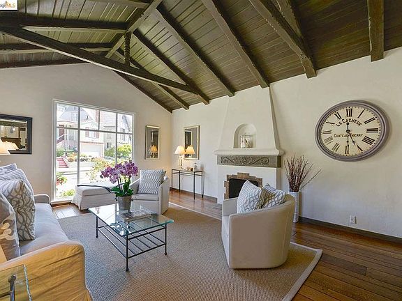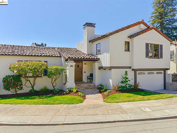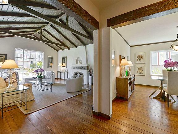 The elegance of timeless architecture is reflected in the gracious rooms and original period details in this Mediterranean style Oakmore gem. The light-filled spaces and easy indoor-outdoor connections embrace the flexibility of the California lifestyle. The spectacular living room, with vaulted, exposed hand-crafted beam ceilings & original rift oak floors, highlight old world charm. Natural light pours through the oversized windows, illuminating the warm hues of the wood and accentuating the spacious dimensions. The formal dining room is set to be the hub for family dinners and parties with friends, with easy access to the updated kitchen and breakfast room. Downstairs, a private third bedroom, a bonus room and full bath offer flexibility and a modern ease to the home. Perfect for guests, master suite or family room. Outside, a wood deck creates the ideal place to relax and entertain; a dreamy urban oasis. Easy to restaurants, shops, parks & commute.
