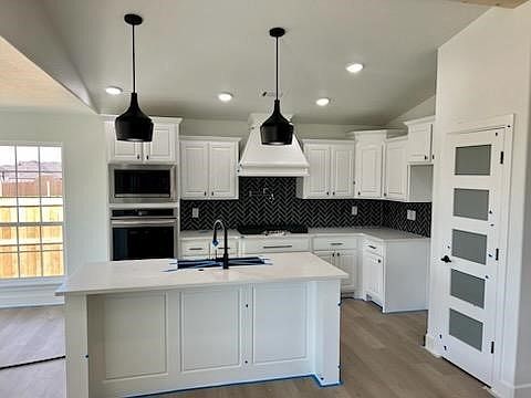 Highly desired Elkhorn Subdivision New construction (completed in 30 days). Three car garage, 4 bdrm, 2 bath, all hard surface floors (no carpet), fence, blinds, gutters, kitchen pot filler, 3 cm quartz, free stand tub, fp, large covered patio and more..