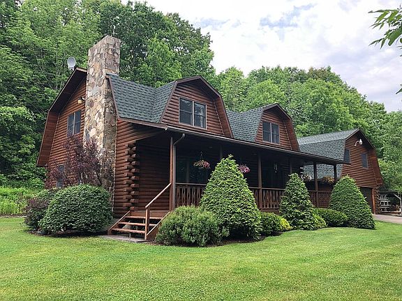 Custom Built Log Home. 3 bedrooms, 3.5 bathrooms. 2.18 acres in a private setting, close to shopping, recreation & schools. Attached 24x30 2 car garage with bonus room above, including a full bath and kitchen. Main level has an open floor plan featuring a large kitchen with new quartz countertops, dining room and living room with a stone fireplace. The basement has a large finished family room, shop and storage area. Enjoy time on the 8x40 covered front porch or in the spacious yard. Call 607-759-0912 to arrange a viewing appointment