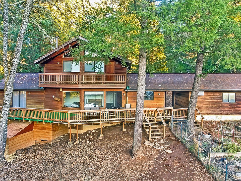 This exceptional farm features two OLCC recreational licenses, 3 large barns, and two home setup set on over 35 acres. Water rights from the adjacent seasonal creek and a winter storage application from the pond ensure a consistent and reliable water supply. The property features two designated, fenced growing areas, and an additional cleared space ready for an additional license, offering expansion potential. The farm's robust infrastructure includes a substantial 600 amps of power and two wells. Living accommodations are provided by a detached 648 sq ft guest home and a beautiful two-story 2018 sq ft main residence. The home is accented with open beam ceilings, tile countertops, tile and hardwood flooring, and stainless steel appliances. Large windows throughout the home offer views of the farm and surrounding mountains. 1801 Davis Creek is an ideal buy checking all the boxes for a successful farm.