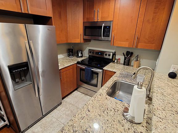 Condo is tastefully decorated and is located in a building with resort-like amenities. Enjoy any one of the 4 pools/jacuzzis, BBQ grills, gym with sauna, and tennis courts. Or take advantage of the various common spaces to relax and maybe meet new friends! Fully furnished with towels, linens, kitchenware, a queen-size bed, as well as a new refrigerator and stove. Utilities, TV, and WiFi included. A perfect work-from-home environment.