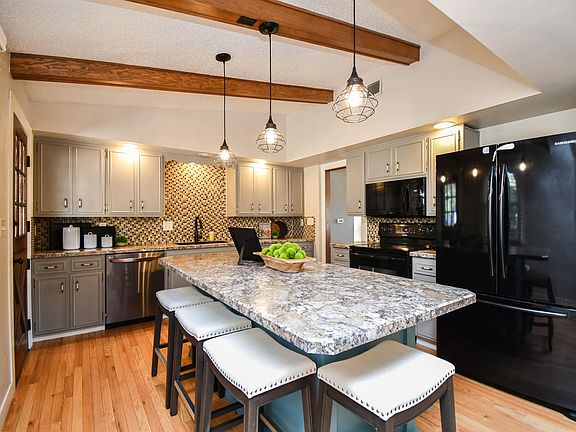 Stately home in a premier location only a few blocks from Tuthill Park. The home is perfectly placed on this huge lot to allow for a big front yard as well as lots of space in the PRIVACY FENCED back yard! Its so rare to find a home with FOUR BEDROOMS ON THE SAME LEVEL but they are all located on a main level that also includes two full baths, including the master suite! Vaulted ceiling in the living room that also includes the original wood burning fireplace with an electric fireplace insert. Wood floors stretch from the living room into the dining & kitchen as well. In the kitchen is a large center island, newer black appliances and access to the back yard. Lower level family room also has a fireplace with an electric log insert. There is also an office that could easily become a 5th bedroom by adding an egress window AND a bath with a stand up shower. Oversized garage has lots of space for two vehicles PLUS a good amount of storage!