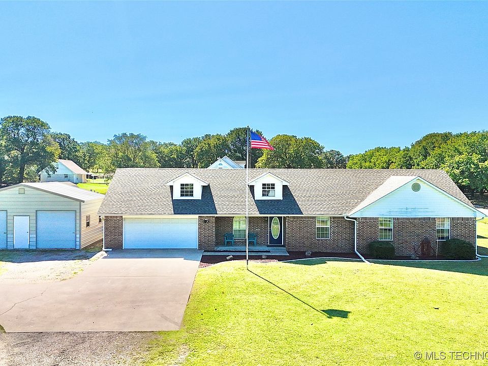A large outbuilding adds valuable storage or workshop space alongside a spacious two-car garage with an additional storage room. The property also includes an updated aerobic septic system, new gutters, and professionally maintained landscaping with large tree removal that opens up the yard beautifully.