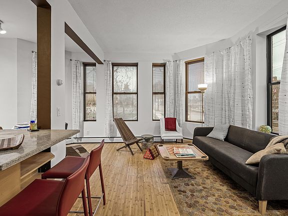 Welcome to the historic Cityview Cooperative, a charming community in the heart of Minneapolis! This stylish, two-story corner unit features beautiful exposed brick walls, tall ceilings, and many large windows that treat you to Downtown views. Elevated, first-floor unit for easy and convenient access, with the living areas on one floor and the bedrooms on another for a nice separation of space. Recent updates include a newer, renovated kitchen with stainless steel appliances, including a dishwasher, as well as bamboo flooring on the main level. You will also find fresh paint, a new bath vanity, ample storage, and newer fixtures. The storage unit is accessible through the 2nd bedroom. The co-op has a shared community room, workshop & free laundry. In the summer residents can enjoy a lush green space in the gated courtyard. Getting to Downtown, Uptown or UofM by bus or bike is a breeze. Easy on-street parking, being on a dead end, with some off-street spots available to rent. HOA dues incl. all property taxes, WIFI, basic cable, heat, water & garbage. Volunteer with co-op to reduce monthly dues. Pet friendly!
