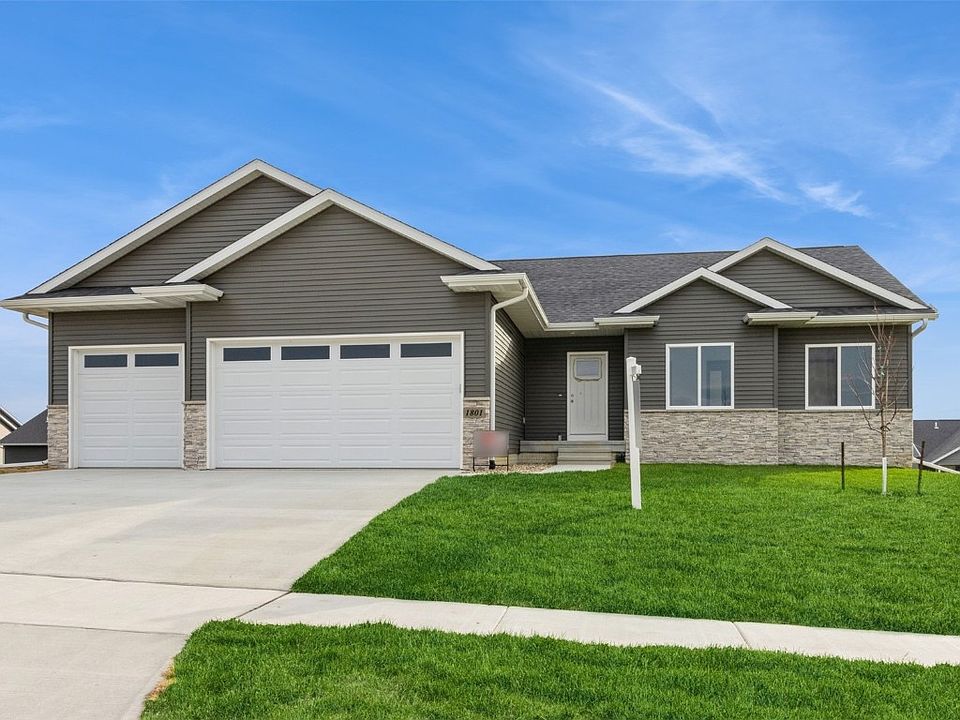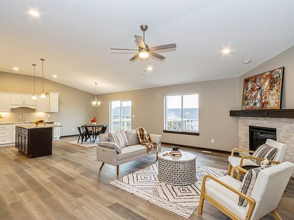 Construction is complete! Quality at an affordable price is abundant in this nearly 1700 sq ft walkout ranch home. Some of the highlights on the inside are an open floor plan with white mission style doors, dark trim throughout, dove tailed cabinetry, quartz tops, plus a gas fireplace featuring stacked stone and a wood mantel. In addition, there is hard surface flooring throughout the kitchen/dining area, living room, foyer and hallway. The bathrooms and main floor laundry room are adorned with tile flooring while the bedrooms are carpeted for a warmer feel. Outside you will find vinyl siding with stone accents, a 3 plus car garage and a 12x12 deck with steps down to the yard. Need more space? Ask me about the opportunity to finish the walkout lower level prior to closing. Your new home is calling. Come see this beauty soon!