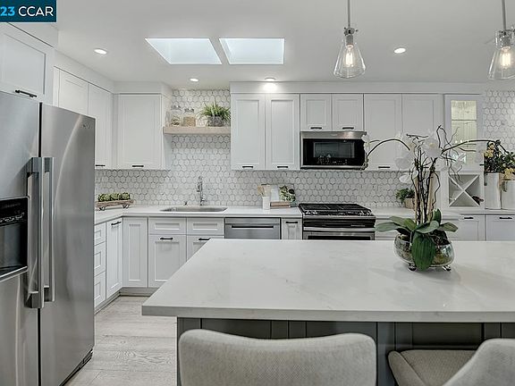- Features: Breakfast Bar, Counter - Stone, Dishwasher, Garbage Disposal, Island, Microwave, Range/Oven Built-in, Refrigerator, Updated Kitchen