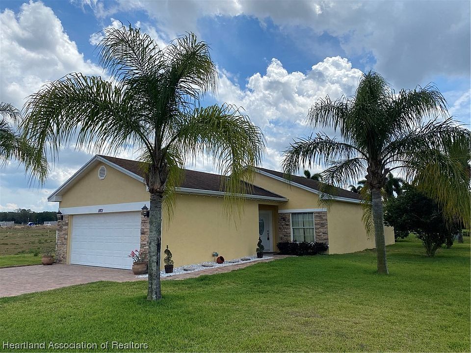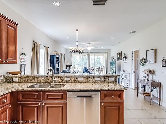 Welcome to Stone Ridge!! This 2BD/2BA home will capture your attention the moment you arrive. Freshly painted on the outside, pavers and landscaped to enhance the curb appeal. Surrounded by mature trees and bushes that add seclusion on this large corner lot. Spacious kitchen, granite counter tops, stainless steel appliances, double sink, gas stove and wrap around bar that opens to the dining room and living space. The owners'' suite with vanity unit, glassed shower and walk-in closet. The additional bedroom has an adjoining bathroom creating privacy for guests, a high vanity, tub/shower and a pocket door separating this bedroom from the living room. There are so many features that set this home apart from others in this neighborhood including: Tiled flooring throughout, granite tops in kitchen and bathrooms, screened porch with pavers, gas stove, gas tankless water heater and oversized garage. Steps away from the community center and pool. The HOA covers lawn care, irrigation, common areas, community pool, clubhouse and much more. Come and take a peek at this like new meticulously maintained home.