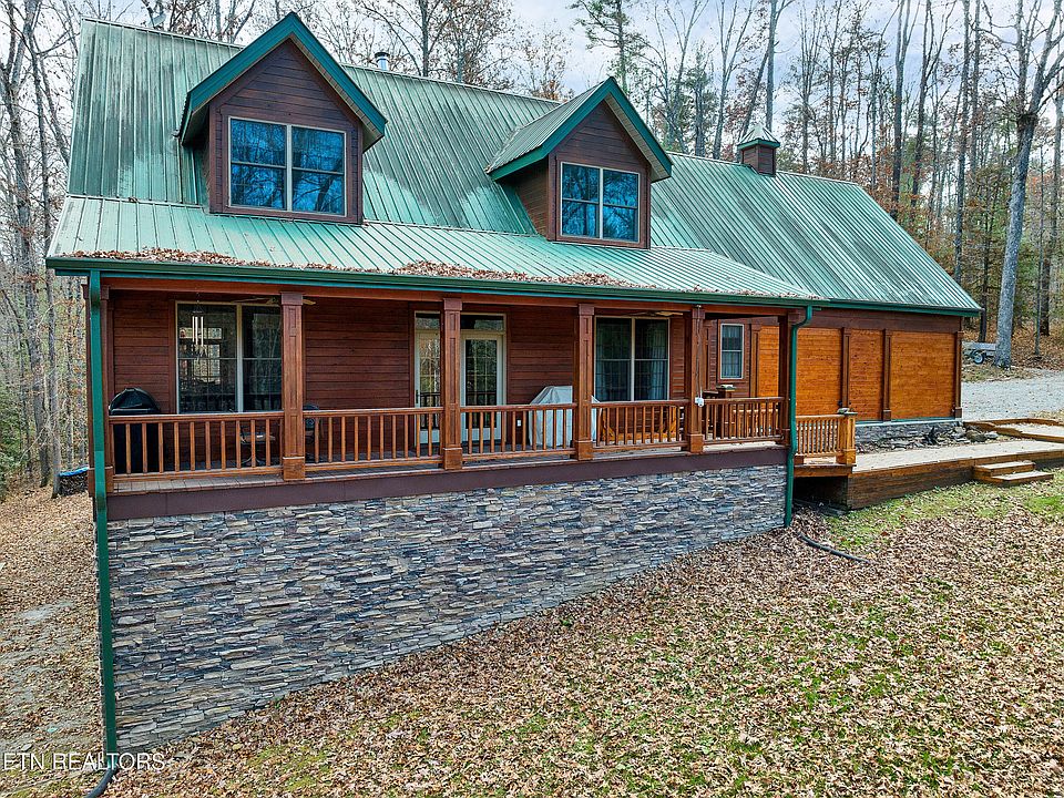 Connect to the outdoors and relax in this beautiful mountain home. Located in Saddle Ridge, a gated subdivision of over 1200 acres, divided into 234 lots (per HOA Winter 2018 newsletter), each 5+ acres. There are 70+ residences, with the majority occupied year round. Residents live surrounded by forested natural beauty: on ridge tops with spectacular views of Chilhowee mountain and the Smokies; in shady ''hollers'' bursting with color from seasonal wildflowers and fall foliage, and along peacefully flowing creeks. Saddle Ridge features large parcel homesites with over 20 miles of private gravel roads in the foothills of East Tennessee, just off East Miller's Cove Road in Walland, approximately 12 miles southeast of Maryville, 14 miles to the Great Smoky Mountains National Park entrance at Townsend, and 28 miles southeast of Knoxville. The newest section of the Foothills Parkway, which opened November 10, 2018, is nearby and provides some of the most spectacular scenery and views of the Smokies anywhere! This exceptional property features a private mountain setting with plenty of outdoor entertainment area including a covered porch running the length of the house, a huge open rear deck that also runs the length of the house, a splendid oversized 28'x28' two (2)-car garage featuring a tongue and groove wood ceiling. There are 3 large bedrooms on the upper level including the master with ensuite bath plus another full bathroom at the landing. There is a 3rd full bath on the main level near the laundry and side entry (perfect for returning from those hunting, fishing, or hiking trips). The main level features a large open concept with the living room, dining area, kitchen island eat-in area, and the kitchen, plus rear deck and front porch access. There is a wood burning stove in the living area for that warm cabin ambiance on chilly Fall or cold Winter days. On the main level there is also a sitting/library room, and a study/office. The sitting room and study both feature built-in shelves and desk, crown molding, sliding pocket doors with overhead transoms. This home features many beautiful extra touches including Pella wood and aluminum clad windows, solid wood flooring and staircases, and tile in the basement and wet areas. The lower level is expansive and provides a 2nd family room with access to the side yard and woods beyond. There are also two (2) well sized interior rooms, one of which has a walk-in cedar closet. A mechanical room and one car garage/shop round out the interior space. New HVAC Oct. 2023. If your heart yearns to be surrounded by forested natural beauty in the Smoky Mountains and its four-season splendor, Saddle Ridge is the place for you! Community areas include a small lake with excellent fishing and wildlife viewing opportunities. There is also a community owned area which is used as