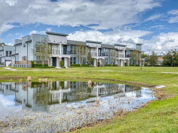 This 3-bedroom, 2.5-bathroom condo is located in the modern SoHo at Lakeside development. It's move-in ready and awaiting your personal touch. The open floor plan downstairs includes a large kitchen island, creating a perfect space for entertaining guests. The kitchen boasts 42" high cabinets, a tiled backsplash, granite countertops, and stainless steel appliances. Upstairs, you'll find three bedrooms, including a spacious master suite with separate his and hers closets, a large bathroom with double sinks, and a private balcony. The home is bright and airy with high ceilings and large picture windows. Convenience is at the forefront with two separate entrances - the front door and a service door into the two-car garage. The quiet community offers Basic Cable & Internet, a pool, a dog park, and a scenic walking path. Plus, it's just minutes from Florida's Turnpike and a short drive to Osceola Parkway. Basic Cable and Internet are included. No smoking, No pets, 12 month lease.