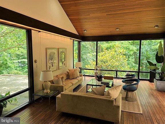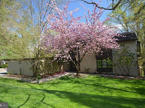 Situated on quiet cul de sac in Ruxton, privacy abounds, and dramatic views captivate through walls of windows beneath towering ceilings. Architecturally significant, mid-century modern home is integrated into its natural surroundings and built with high-quality, period materials and details. Rooms drenched in natural light, soft hues and organic design elements of wood, brick, and stone unite residence and landscape. Formal living and dining rooms, a handsome study with walls of built-ins and wood burning fireplace, and spacious main level bedroom suite with adjoining office flow seamlessly to rear terraces with views of mature trees and native wildlife habitat. Kitchen with island, breakfast bar, granite counters, stainless appliances, and table space connects to main level laundry. Upper level features a second large primary bedroom suite with walk-in closet and balcony, plus third bedroom and bath adjacent to a light-filled bonus room overlooking the foyer and grand living room. The finished walkout basement includes a fourth bedroom with private entrance and hall bath adjacent to wet bar - perfect for au pair or in-law, wine room, storage, and a family room with wood burning fireplace with magnificent copper hood detail, and adjacent recreation or fitness room with sliders to rear grounds. Generator, garden irrigation system, and 2-car attached garage. Access the renowned 500-acre Lake Roland Park via the Red Trail just steps from the rear woodlands for nature walks along the Lake, past Paw Point dog park, and the Jones Falls. Convenient to I-83, the popular Ruxton neighborhood village, and just minutes to the Best of Baltimore on the Harbor.
