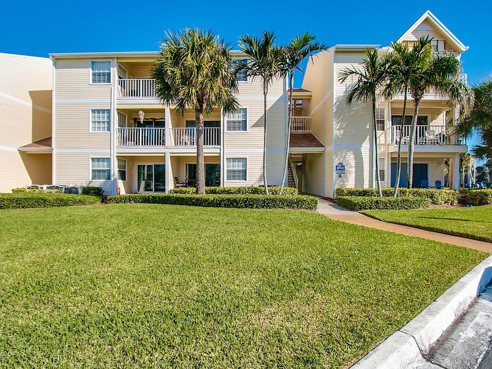 Here's your perfect beachside get away or investment opportunity. Turn Key condo - walk or bike to beach or river, shopping & dining. Nicely appointed interior with fresh paint and new carpet. Kitchen & bath have tile flooring. 3rd Floor offers vaulted ceilings & no-one above you. Spacious screened porch to enjoy the constant Florida ocean breezes. The resort style community offers a lovely pool & spa, fitness center, playground, tennis courts and heated community pool to enjoy year round. Wellrun association with low Condo Fees. 2 pets permitted - not dangerous breeds. No rental restrictions except tenants must be approved by association prior to occupancy. Condo Docs attached under documents tab.